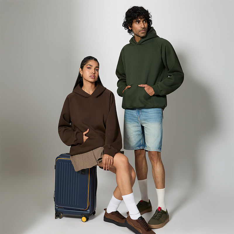 340 GSM midweight cotton, ridiculously soft fleece lining. Frequent flyer miles friendly. Where’s next?