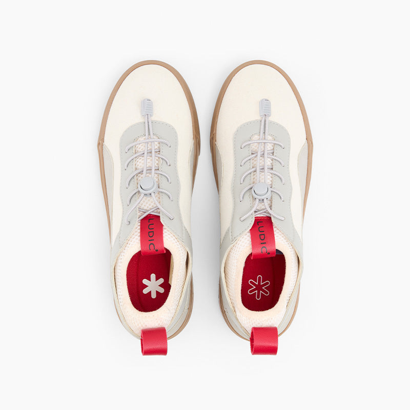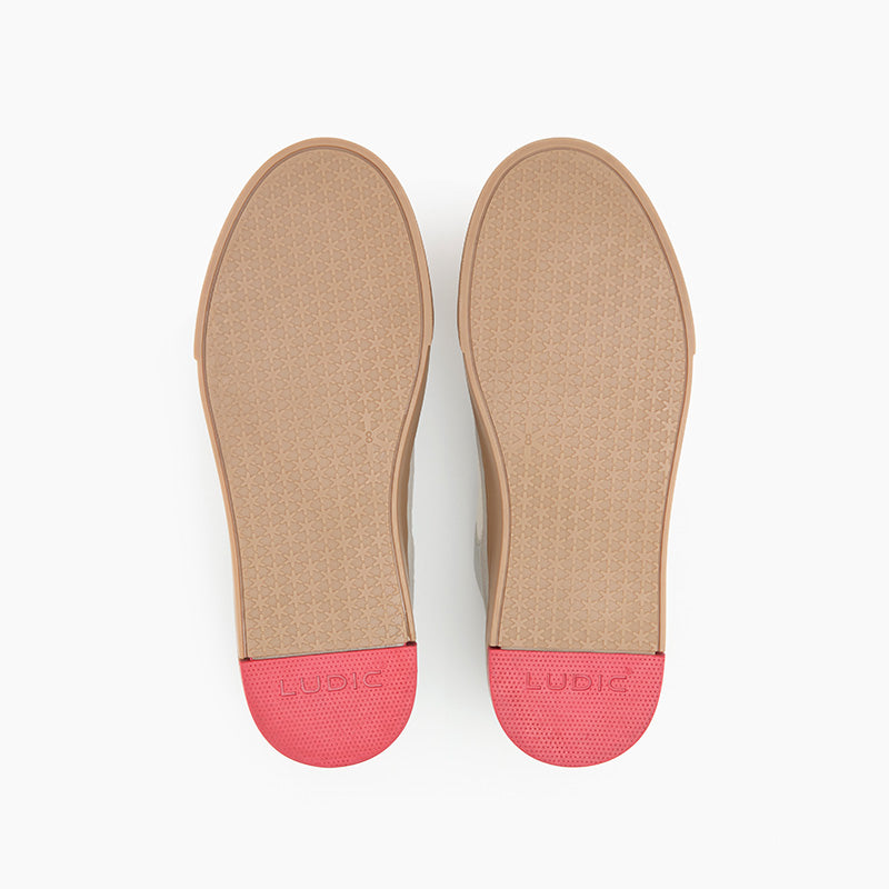 The signature hybrid sock-like construction sits on a Ludic proprietary gum sole featuring red detailing under the foot.